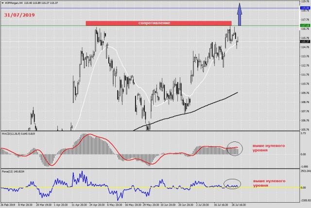Цена над МА 200, что указывает на растущий тренд. Гистограмма MACD над нулевой линией. Осциллятор Force Index над нулевой линией. При пробое ценового уровня, следующие рекомендации: • Временной период: H4 • Рекомендация: Покупка • Уровень входа в позицию: Покупка по 117.10 • Уровень Take Profit: 119.00 (190 пунктов) При отбое от уровня поддержки следующие рекомендации: • Временной период: H4 • Рекомендация: Продажа • Уровень входа в позицию: Продажа при пробитии 114.50 • Уровень Take Profit: 113.50 (100 пунктов) USDJPY...