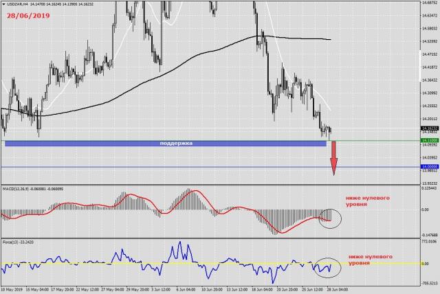 Цена находится под средней скользящей МА 20 и МА 200, что указывает на нисходящий тренд. MACD под нулевой линией. Осциллятор Force Index под нулевой линией. При пробое ценового уровня вниз, следующие рекомендации: • Временной период: H4 • Рекомендация: Продажа • Уровень входа в позицию: Продажа при пробитии 14.1100 • Уровень Take Profit: 14.0000 (1100 пунктов) При отбое от уровня поддержки следующие рекомендации: • Временной период: H4 • Рекомендация: Покупка • Уровень входа в позицию: Покупка по 14.2000 • Уровень Take...