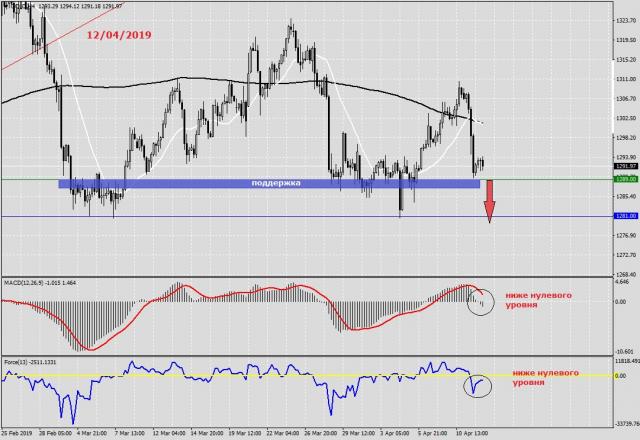Цена находится под средней скользящей МА 20 и МА 200, что указывает на нисходящий тренд. MACD под нулевой линией. Осциллятор Force Index под нулевой линией. При пробое ценового уровня вниз, следующие рекомендации: • Временной период: H4 • Рекомендация: Продажа • Уровень входа в позицию: Продажа при пробитии 1289.00 • Уровень Take Profit: 1281.00 (800 пунктов) При отбое от уровня поддержки следующие рекомендации: • Временной период: H4 • Рекомендация: Покупка • Уровень входа в позицию: Покупка по 1295.00 • Уровень Take...